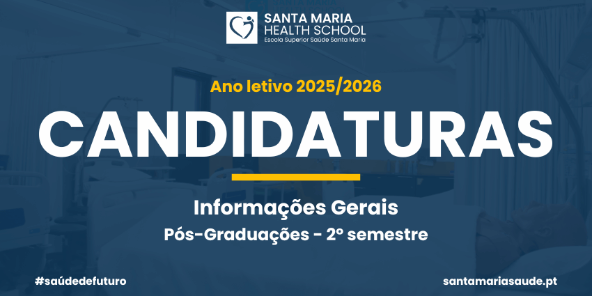Aqui poderá encontrar todas as informações relativas aos processos de candidatura e matrícula aos Cursos de Pós-Graduação da Santa Maria Health School – Escola Superior de Saúde de Santa Maria (Porto), para o ano letivo de 2025/2026 – 2º semestre.