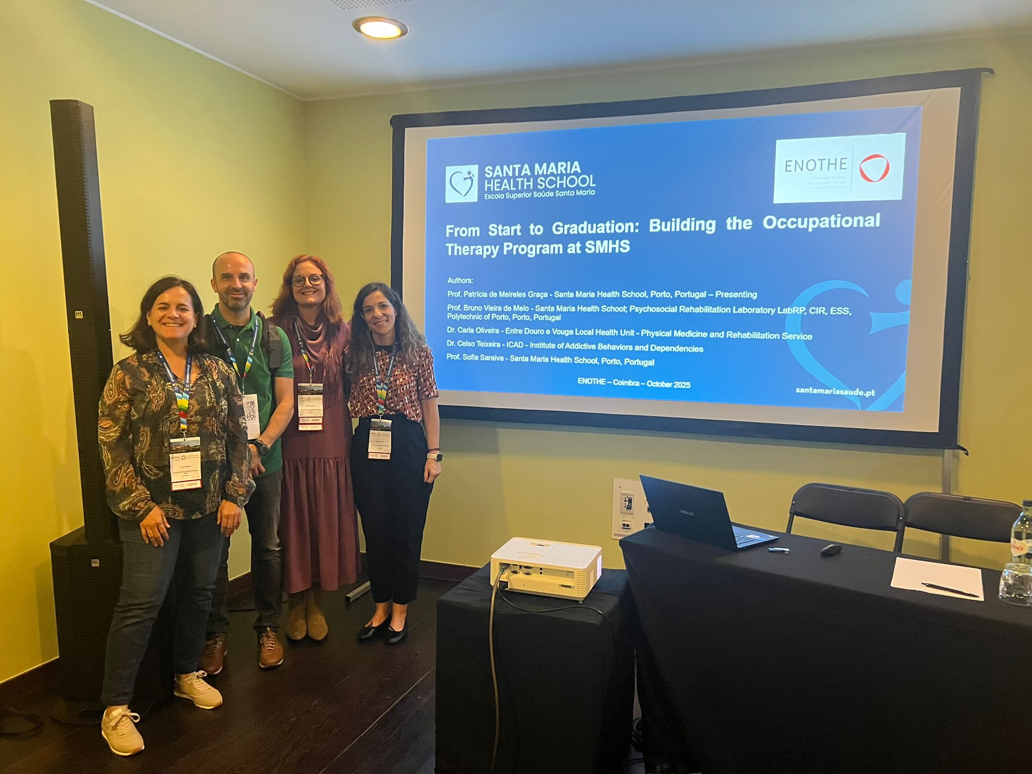 Esta comunicação decorreu no 28th ENOTHE Annual Meeting, a decorrer em Coimbra, de 23 a 25 de Outubro de 2025. Nesta apresentação partilharam, com docentes e estudantes de vários países, o processo e desafios de um novo Curso de Licenciatura em Terapia Ocupacional em Portugal.