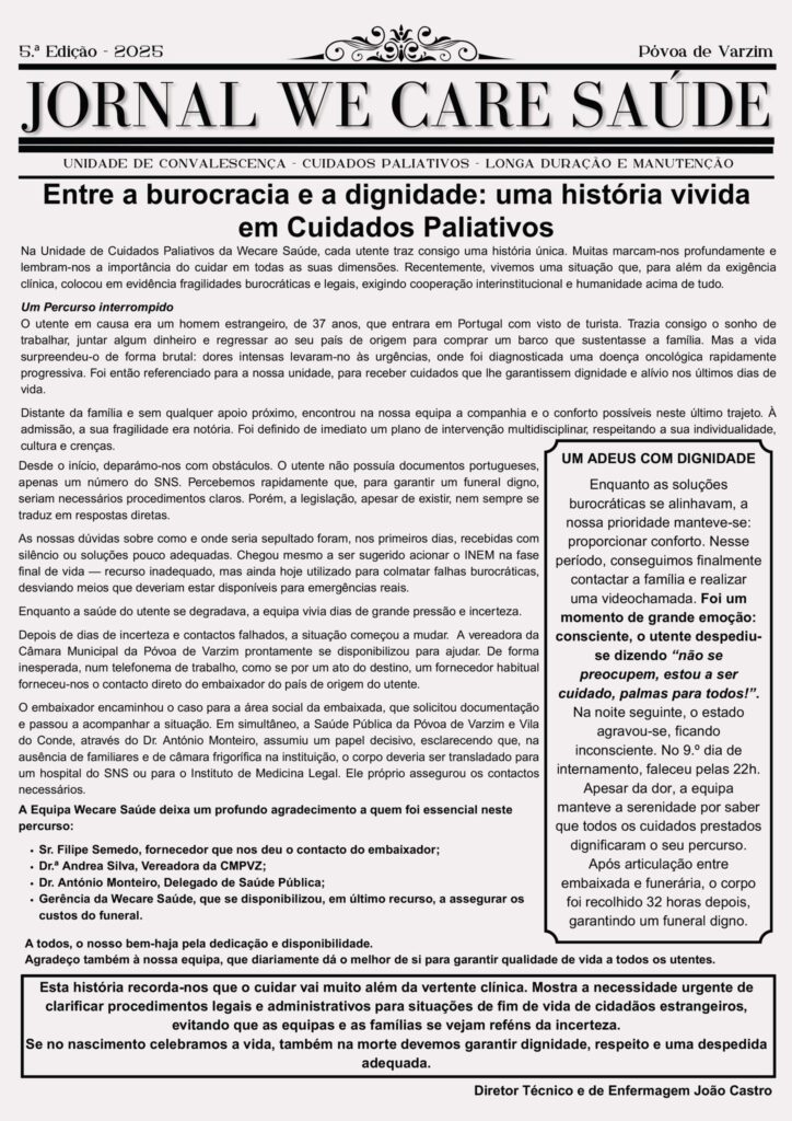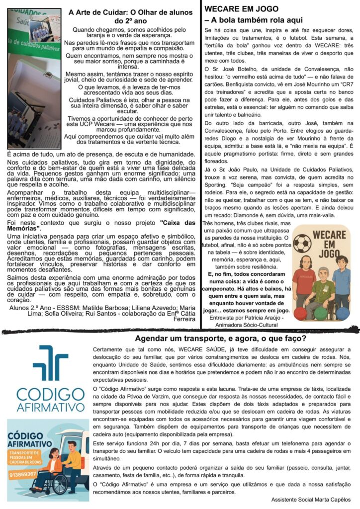 O artigo intitulado “A Arte de Cuidar: O Olhar de alunos do 2º ano” foi promovido no âmbito da Unidade Curricular “Ensino Clínico – Fundamentos”, destacando o trabalho desenvolvido pela equipa multidisciplinar sobre os Cuidados Paliativos.