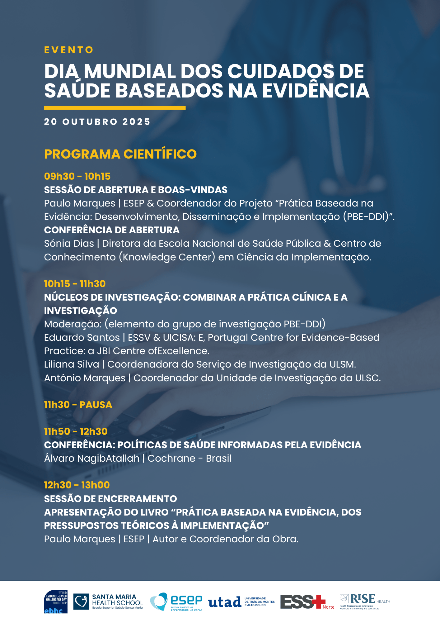 O Dia Mundial dos Cuidados de Saúde Baseados na Evidência será comemorado a 20 de outubro de 2025 e, associam-se a este evento várias instituições de referência a nível mundial.