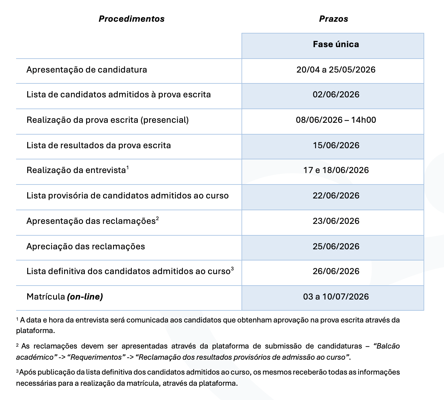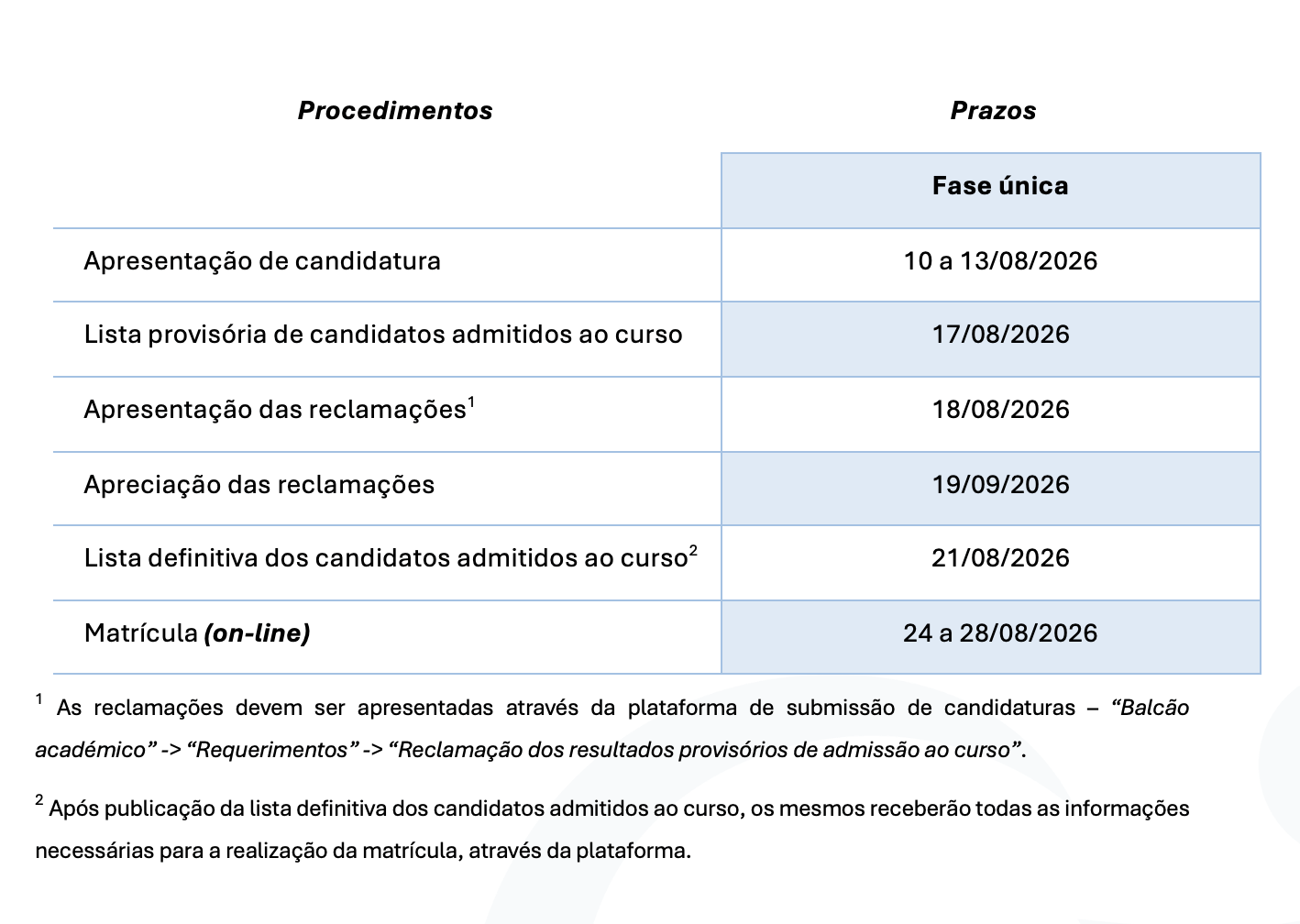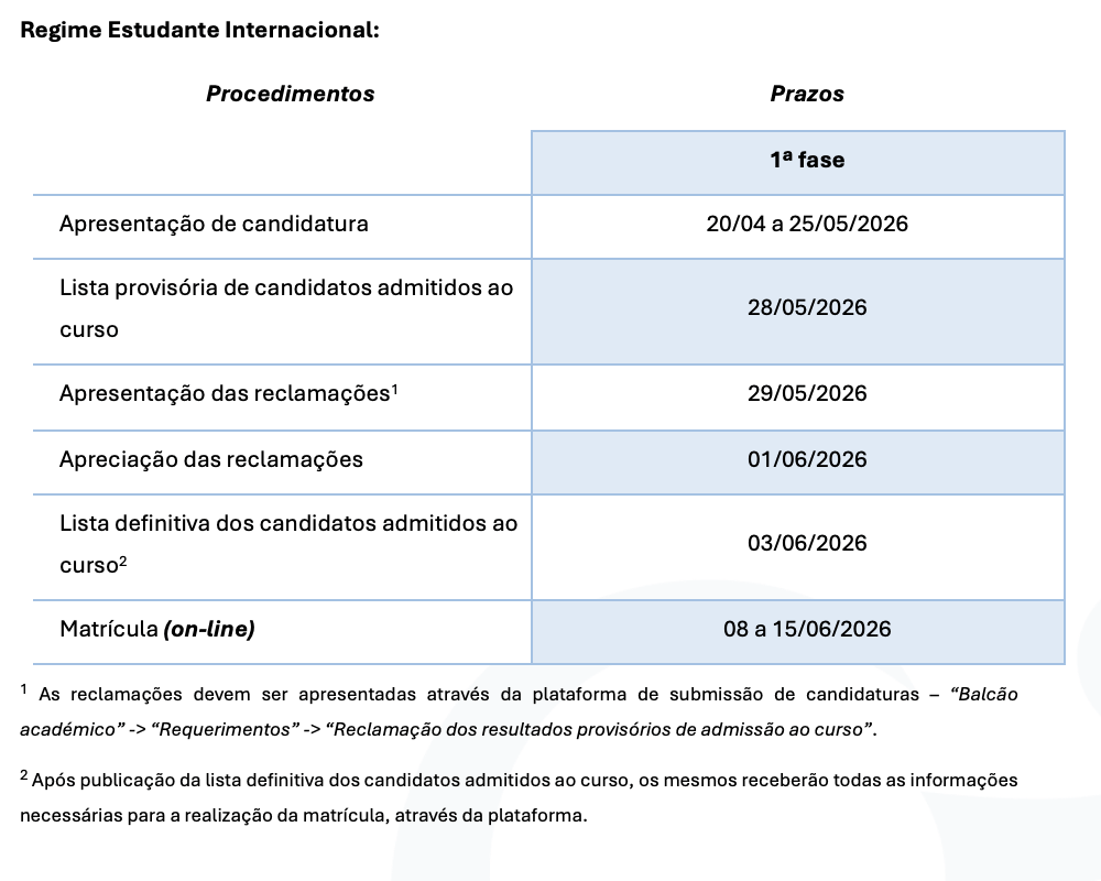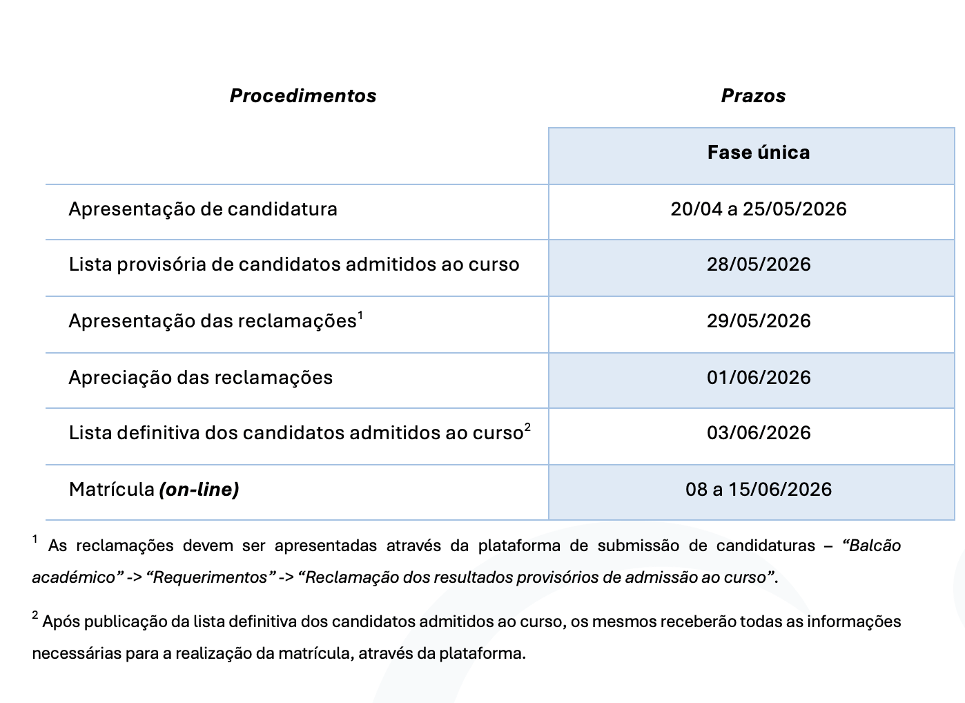 O número de vagas foi previamente aprovado pela Direção Geral do Ensino Superior (DGES).