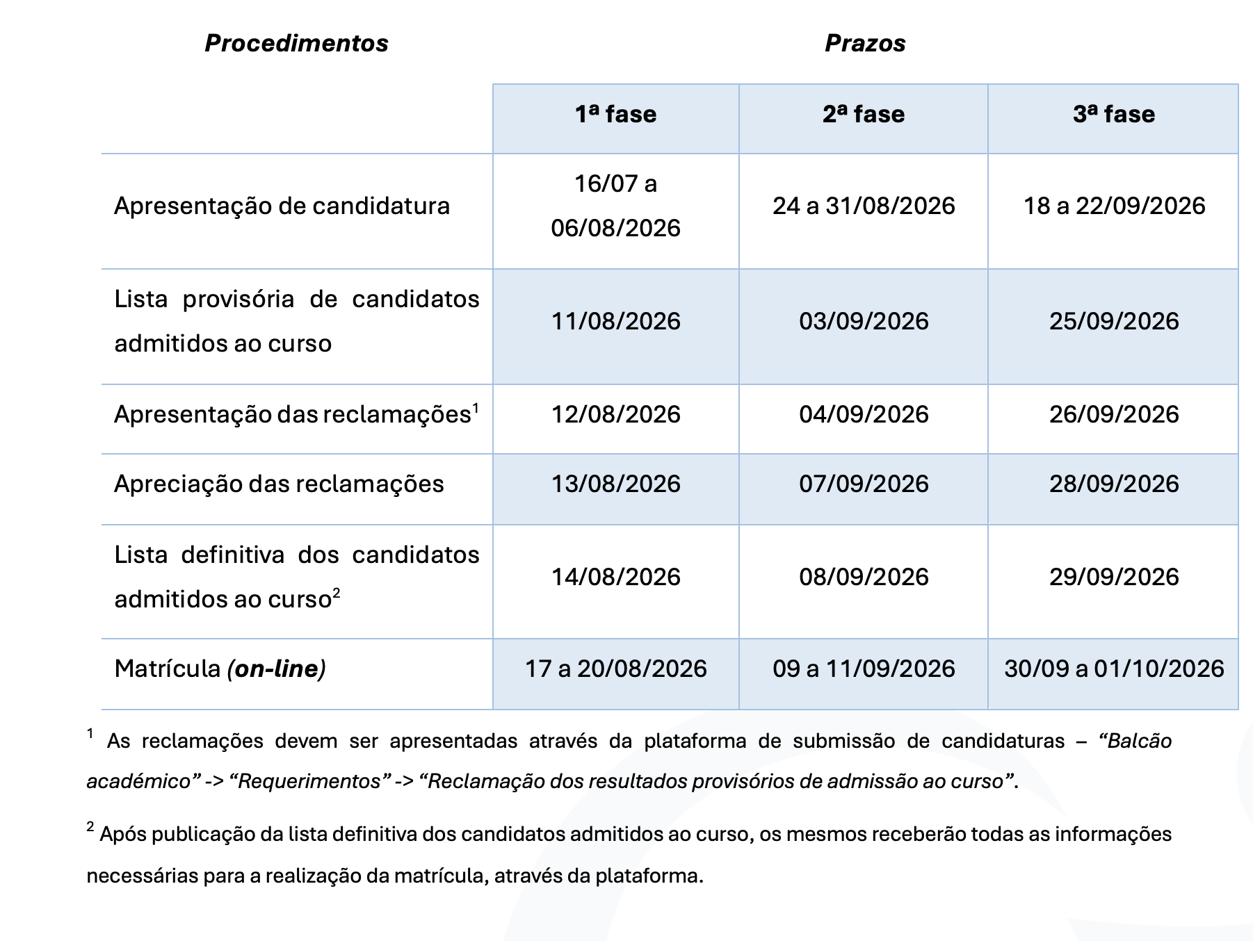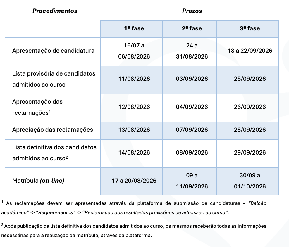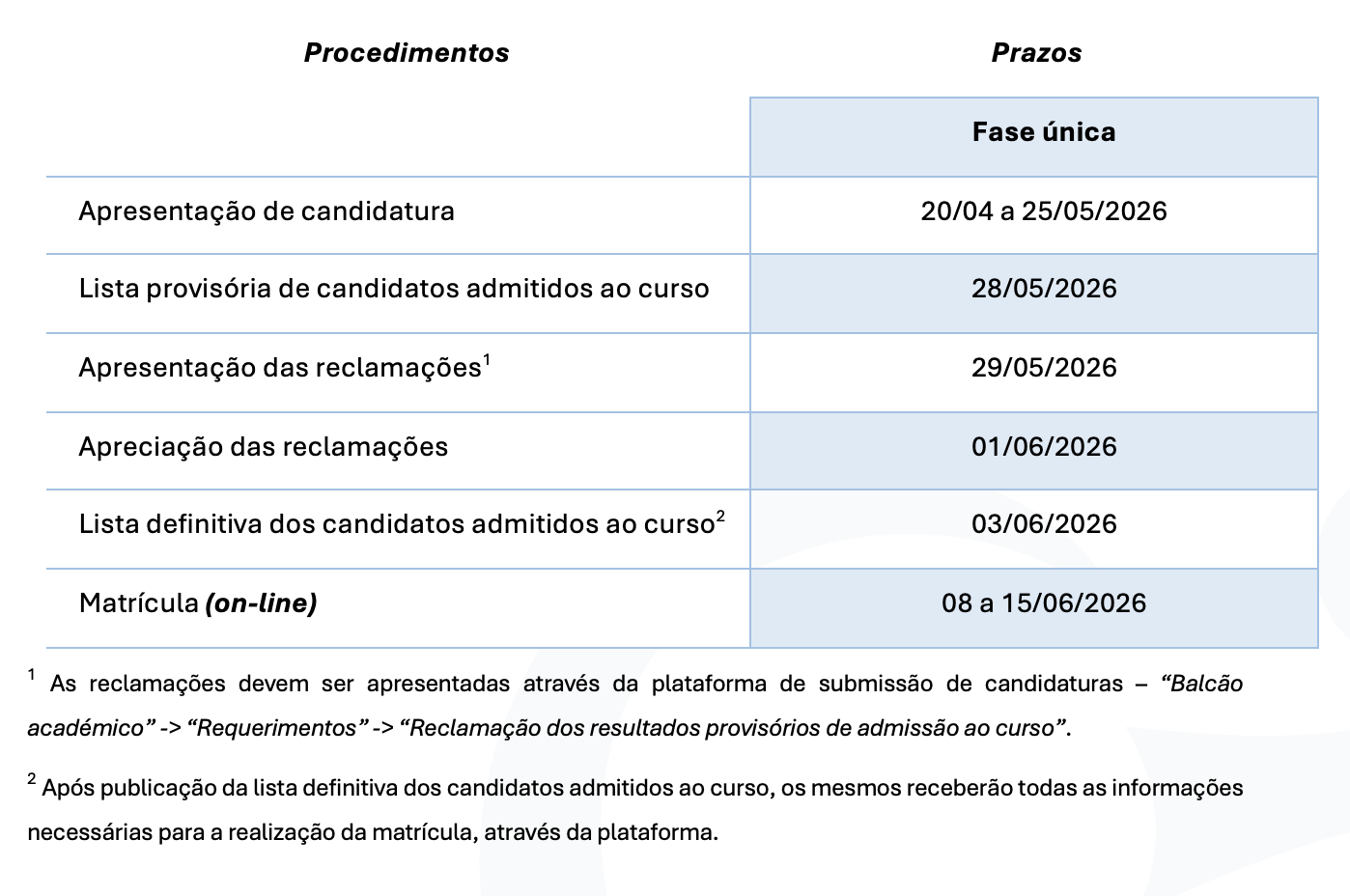 O número de vagas foi previamente aprovado pela Direção Geral do Ensino Superior (DGES).