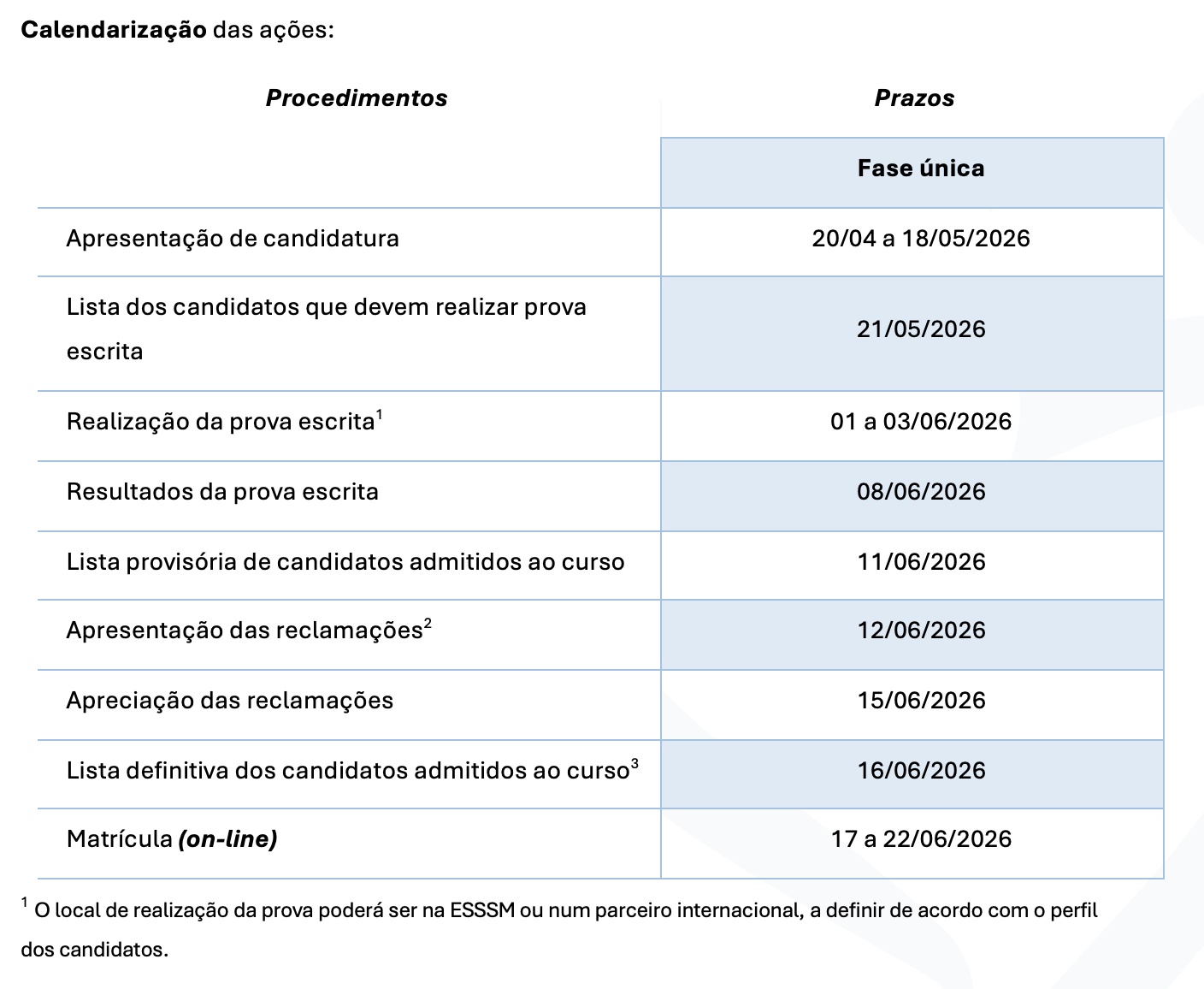 A Prova Escrita e a Entrevista serão realizadas na Escola Superior de Saúde de Santa Maria, sediada na Travessa Antero Quental, 173/175, 4049-024, Porto.