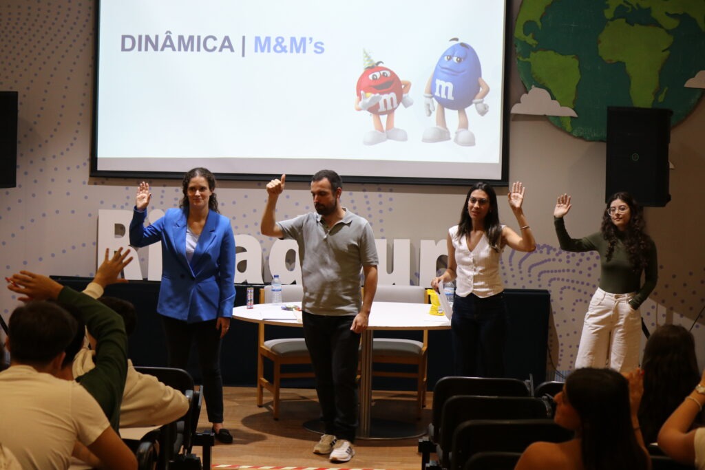 Foram ainda partilhadas estratégias e métodos práticos de gestão e regulação emocional, com destaque para o método de estudo PQ4R, que visa otimizar a aprendizagem e reduzir a ansiedade associada aos exames. Através de dinâmicas participativas e experiências práticas, os estudantes puderam explorar técnicas como “comer um M&M em Mindfulness” e a respiração consciente, promovendo momentos de autoconhecimento e consciência plena.