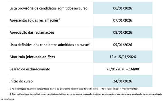 Podem consultar todas as informações sobre o período de reclamações e a lista definitiva de candidatos admitidos aos diferentes cursos e regimes aqui.